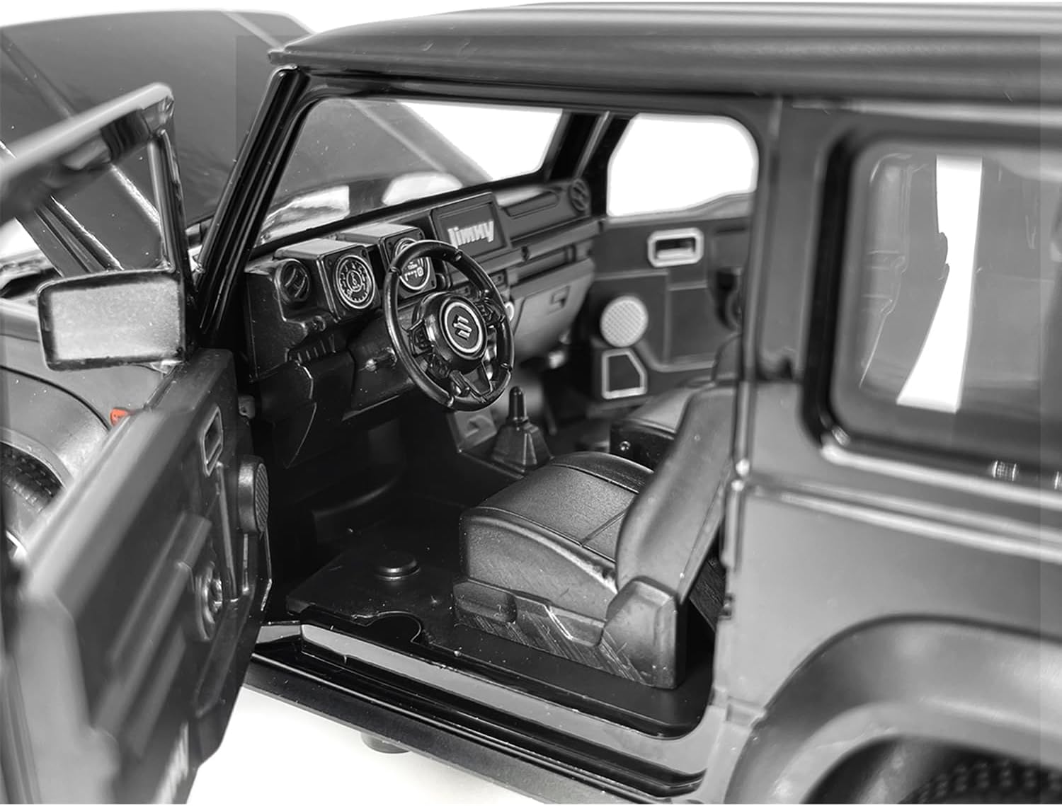 - [Detailed Design] This SUV toy displays a detailed design that mimics the actual Jimny, complete with a rugged bumper, openable doors, realistic tires, and a detailed interior. These elements make the toy car not only fun to play with but also a great display piece.