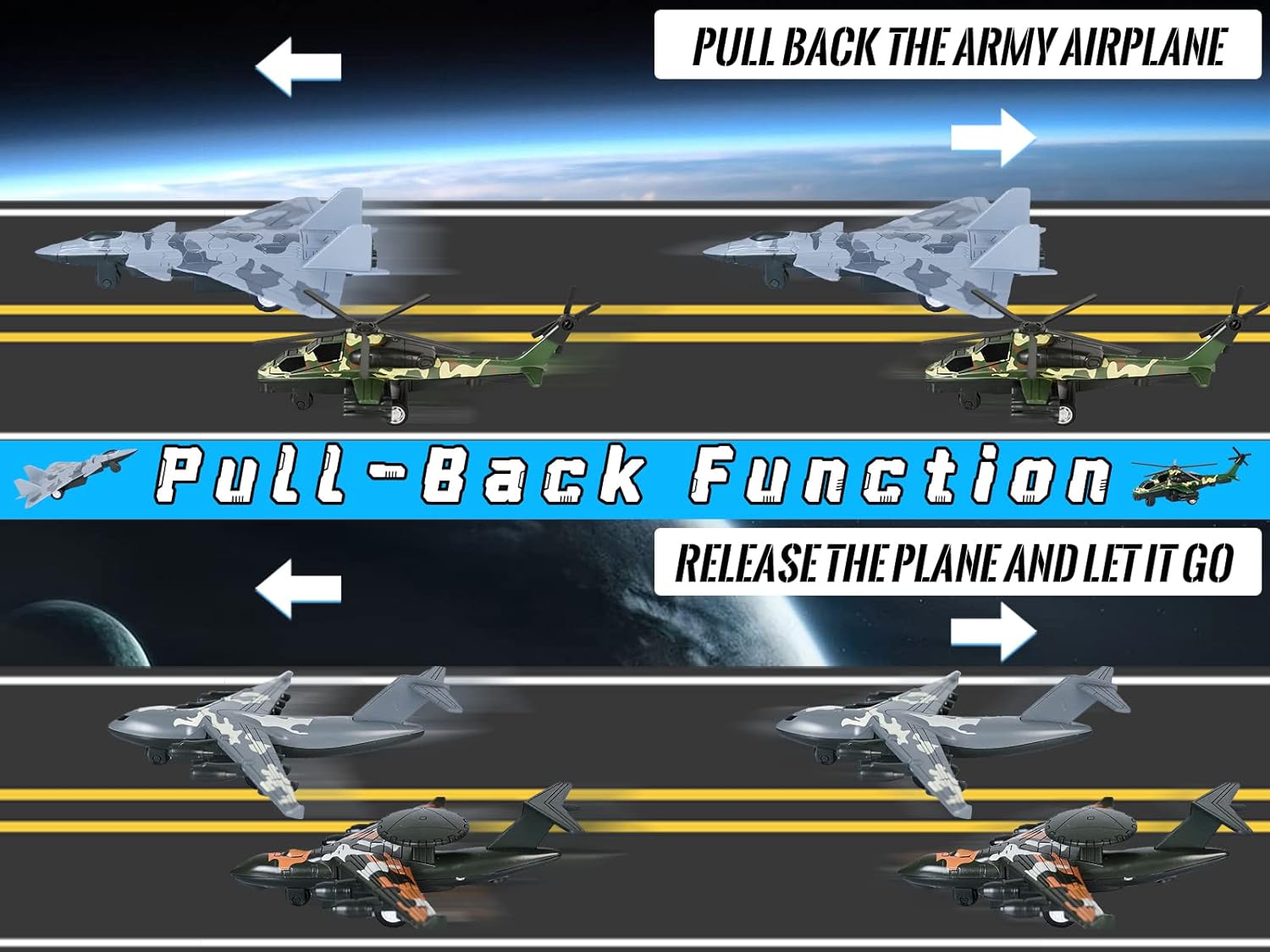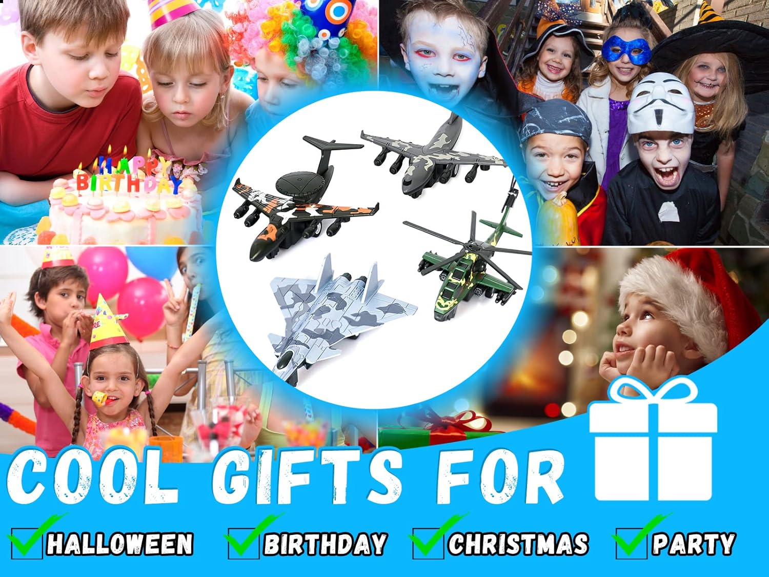Crelloci 4PCS Army Airplane Toys Set-Diecast Aircraft Plane Model Kit Military Fighter Jet Playset Helicopter Camouflage Pull Back Aircraft Kids Play Vehicle for 3+Year Old Boys Girls