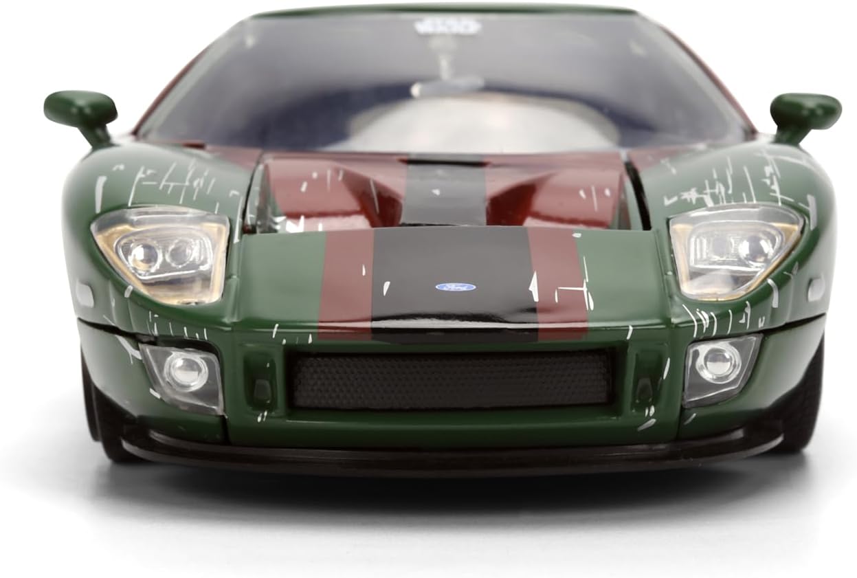 Bounty hunting meets high performance racing in this explosive Star Wars and Jada Toys crossover. This 1:24 scale diecast set pairs the legendary Boba Fett with a customized 2005 Ford GT, complete with premium detailing, free rolling wheels, and an included figure. The Ford GT boasts a battle worn finish inspired by Boba Fett’s Mandalorian armor, making it an eye-catching addition to any display. The included Boba Fett figure is ready for action, standing poised beside his trusted ride. Whether staging a bounty chase across the galaxy or showcasing this duo in your collection, the fusion of Star Wars storytelling and Jada Toys styling delivers big on both fun and fandom. Fuel your galaxy with this must-have collectible bring Boba Fett and his ride home today.