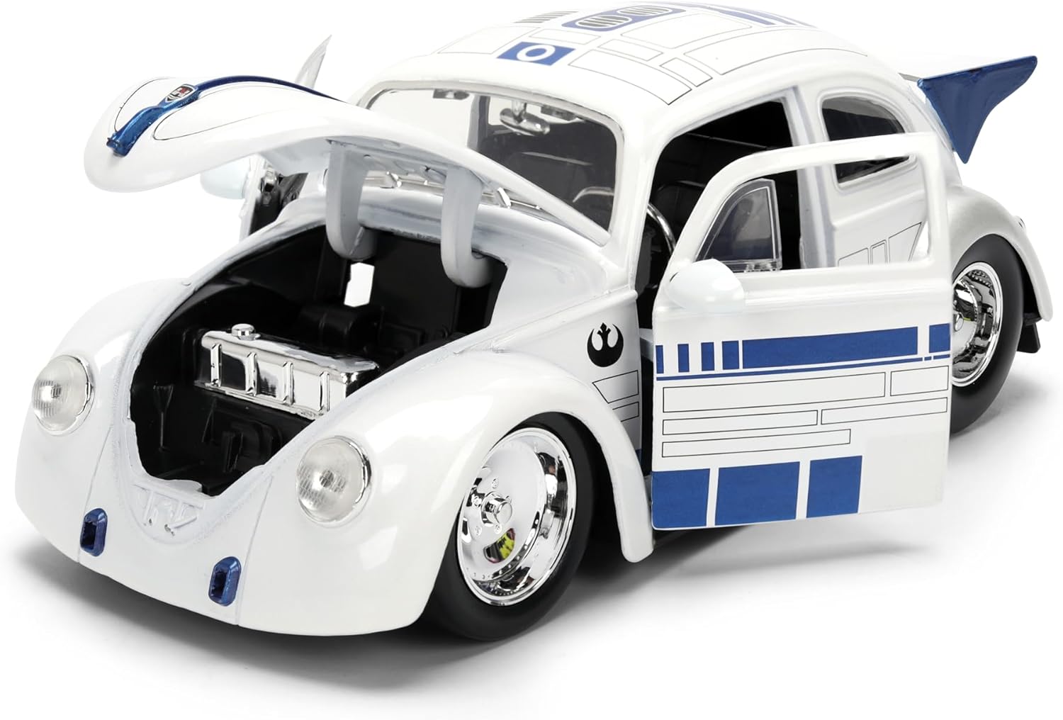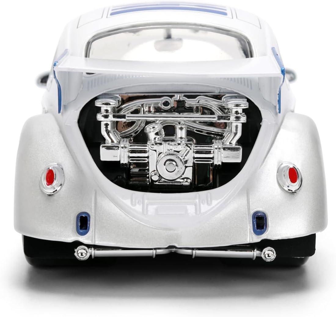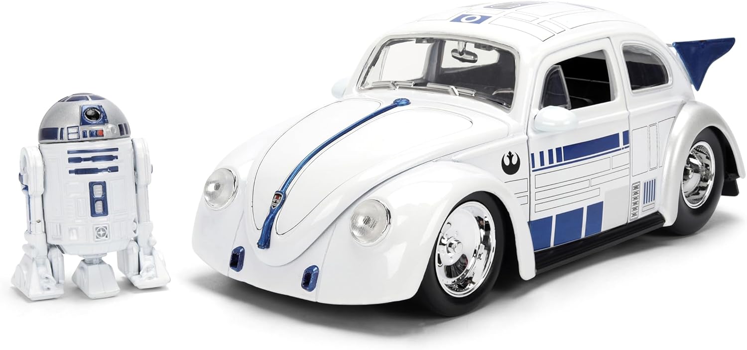 Where vintage horsepower meets galactic tech—introducing the R2-D2 x 1959 Volkswagen Drag Beetle! This 1:24 scale die-cast collectible fuses the unmistakable charm of a classic VW with the futuristic flair of everyone’s favorite astromech droid. Featuring authentic paintwork, chrome trim, and R2-D2 graphics, this drag beetle captures both Star Wars nostalgia and retro car culture in stunning detail. Complete with a 2.5-inch R2-D2 figure, this set is perfect for imaginative play or showcase-ready shelf presence. Opening doors and hood invite interaction, while free rolling wheels bring motion to your next mission. From galaxy-trekking fans to gearheads, this crossover collectible is ready to roll. Power up your Star Wars collection and drive the Force home today!