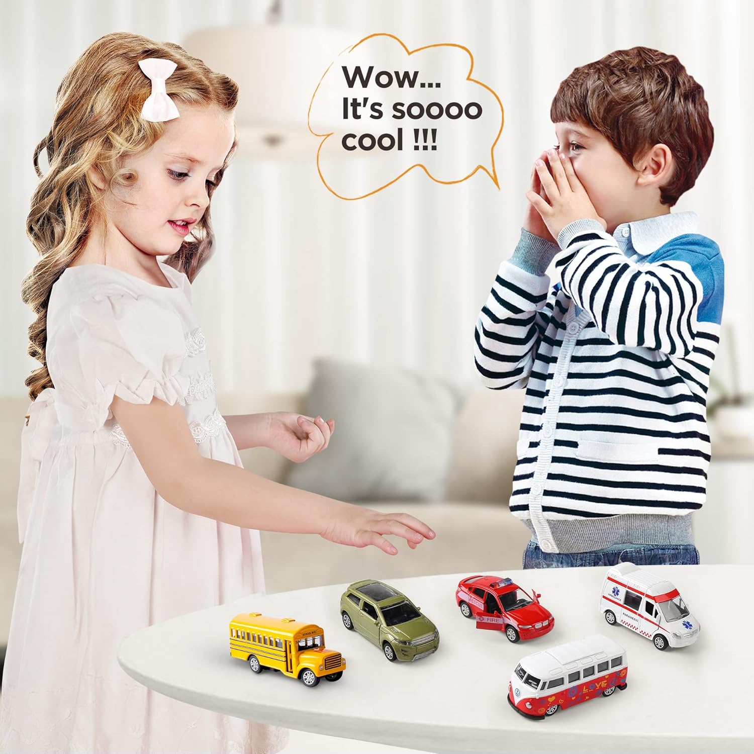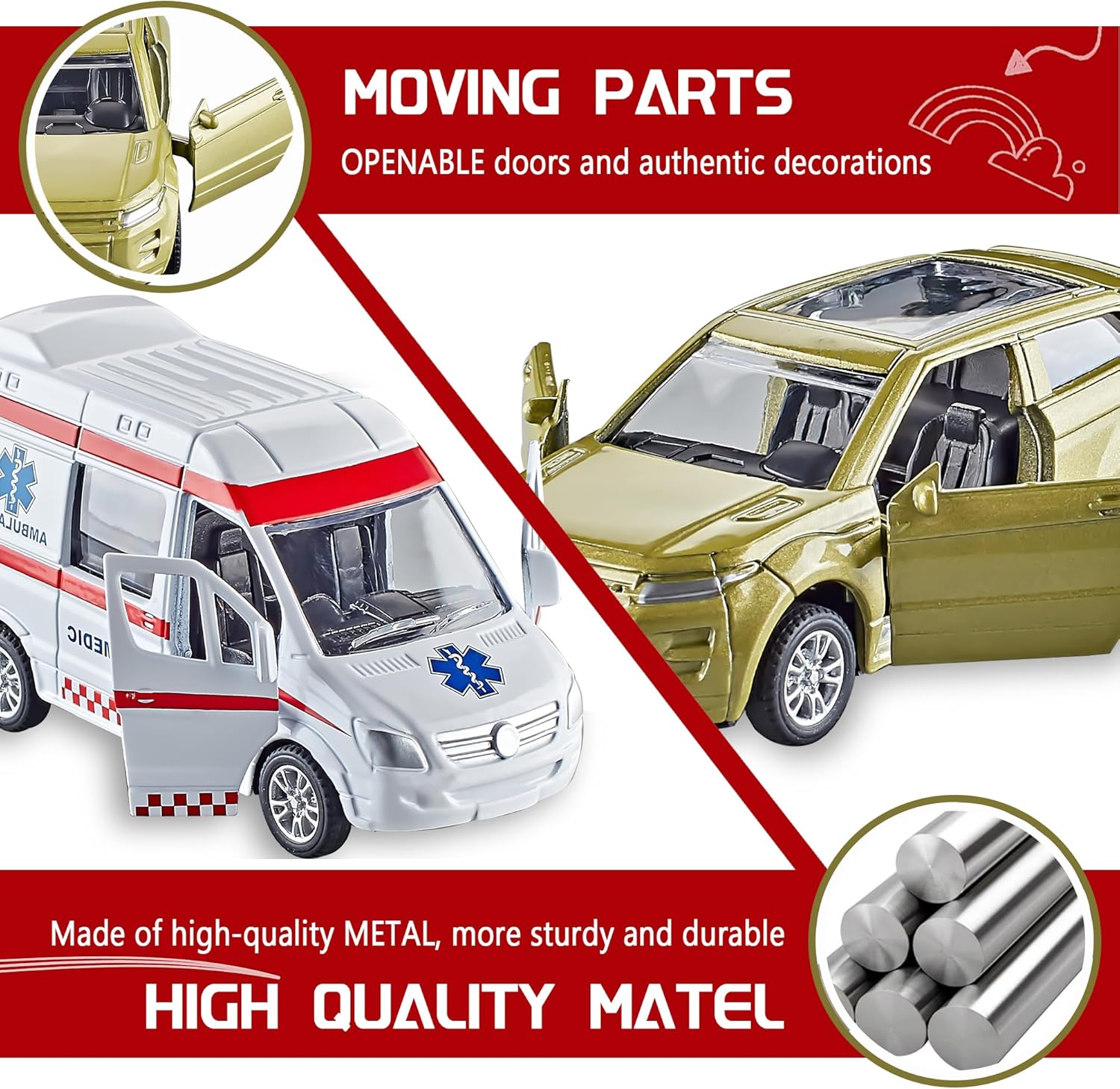 KIDAMI Die-cast Metal Toy Cars Set of 5, Openable Doors, Pull Back Cars Ambulance, Gift Pack for Kids (Official Car Ⅱ)
