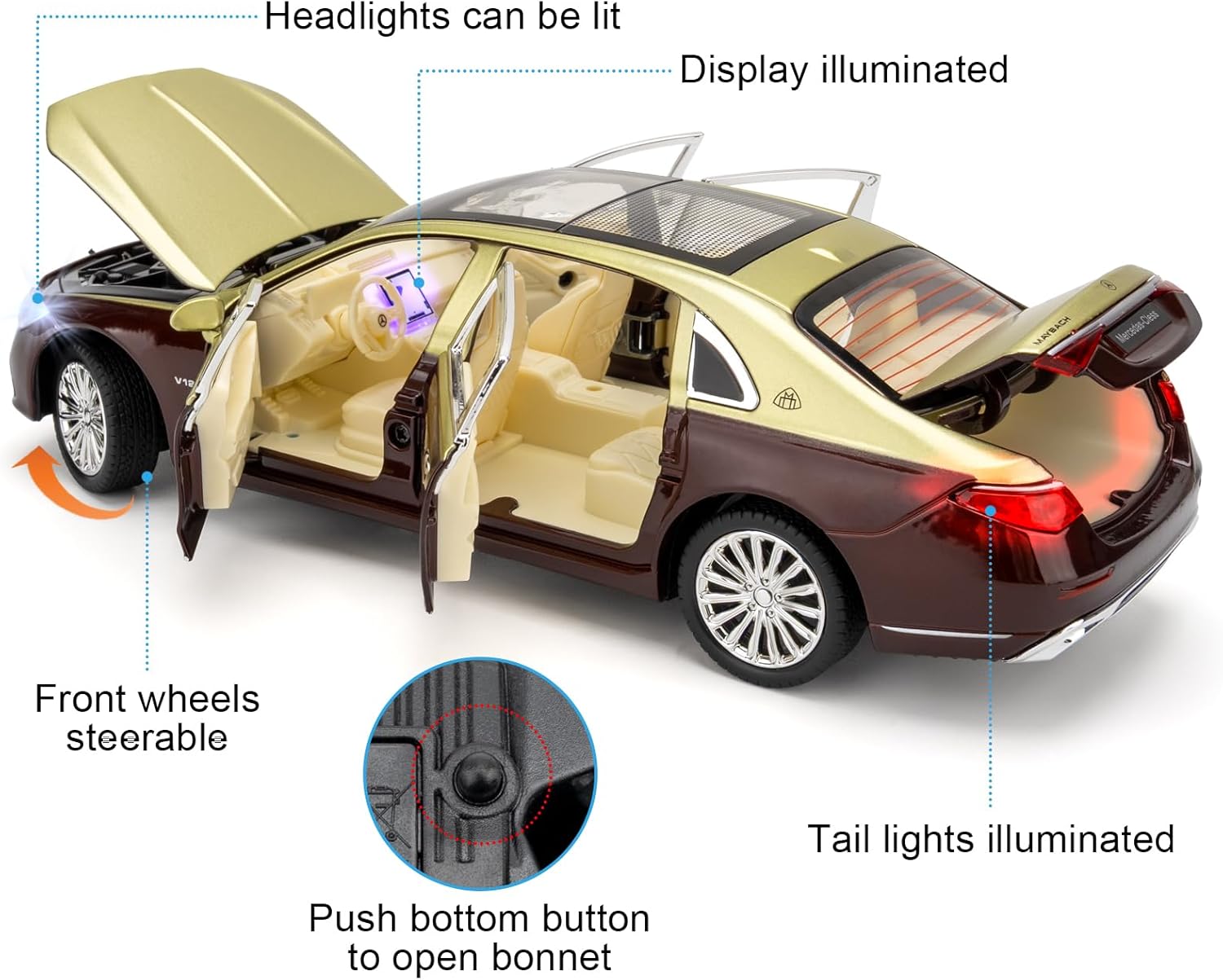 - Open Door Design: S680 model car can open 6 doors, panoramic high-transparency sunroof design, the interior and exterior decorations are very realistic, restoring the texture of the real car, which is very suitable for car model enthusiasts to collect;