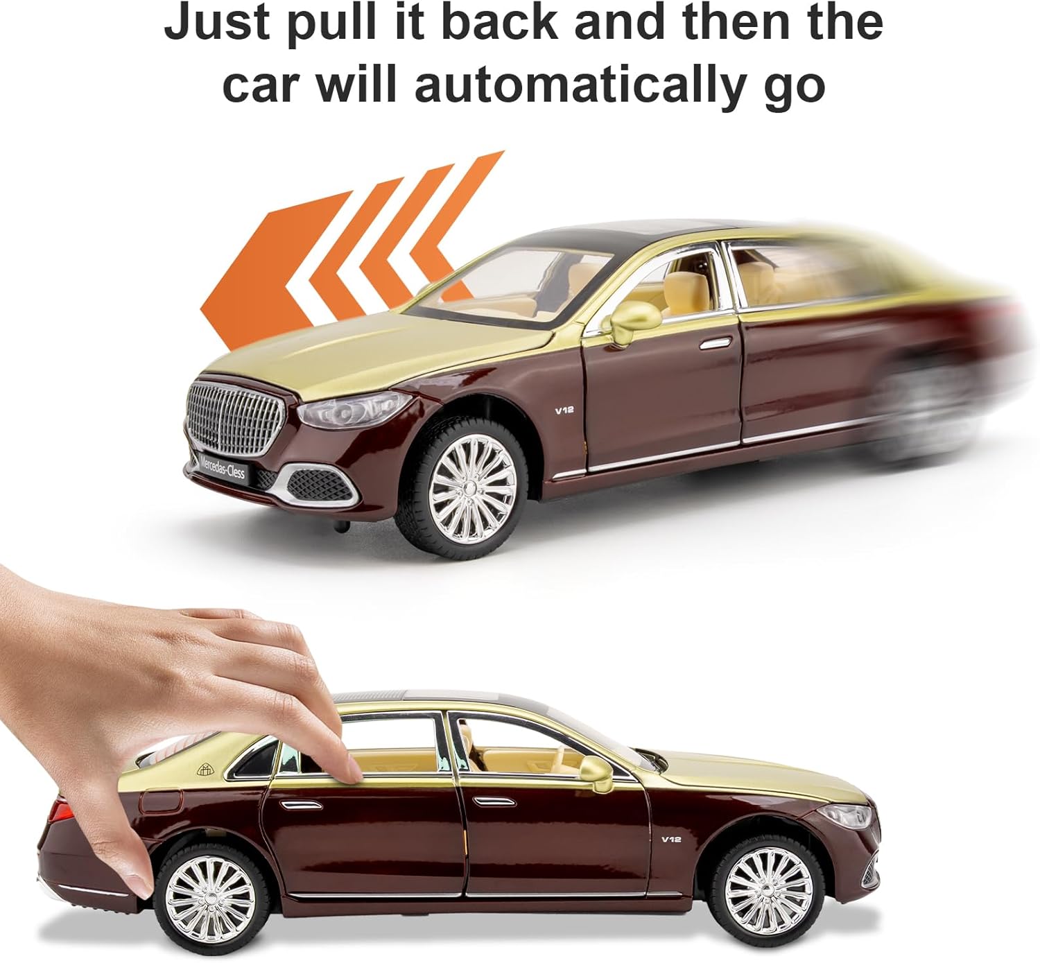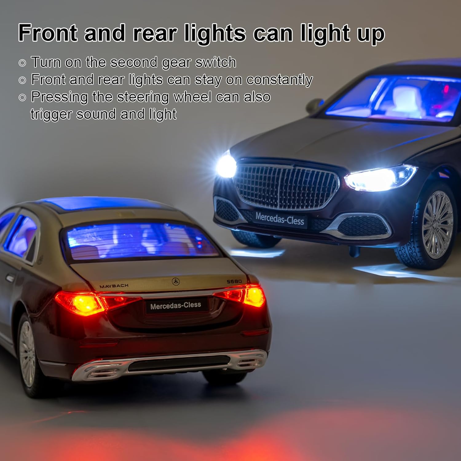 - Sound and Light Function: S680 die-cast alloy toy model car needs to open the bottom switch first, then press the front wheels or open the driver's door to trigger the lights and engine sound, and the front wheels can be steered to restore the texture of the real car;