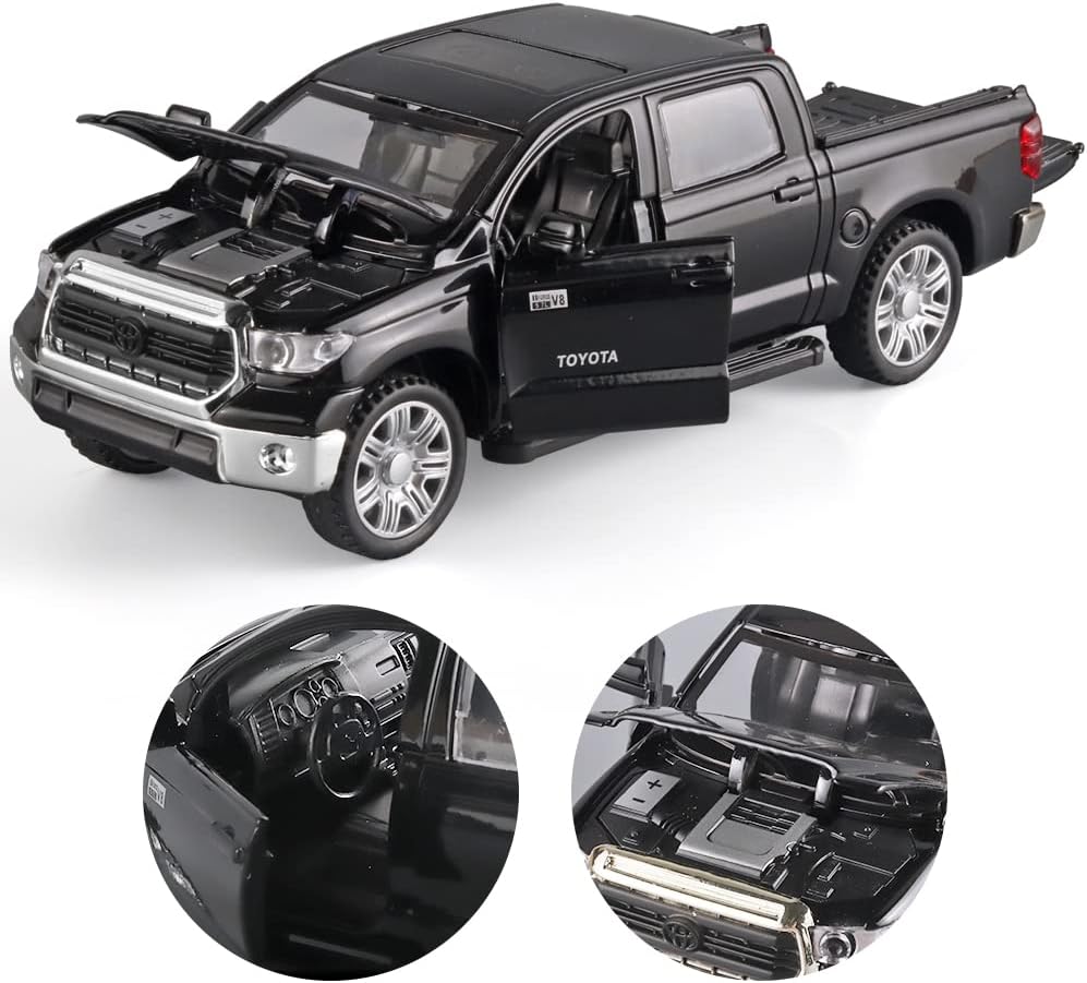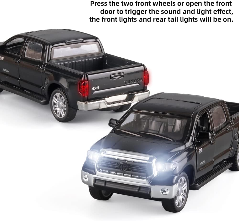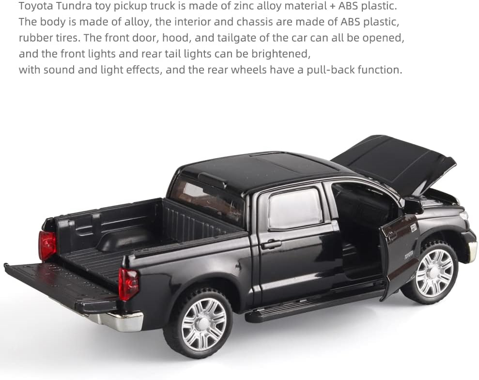 Put the tundra toy car on a horizontal surface and gently pull it back and let go, he will run forward for a certain distance