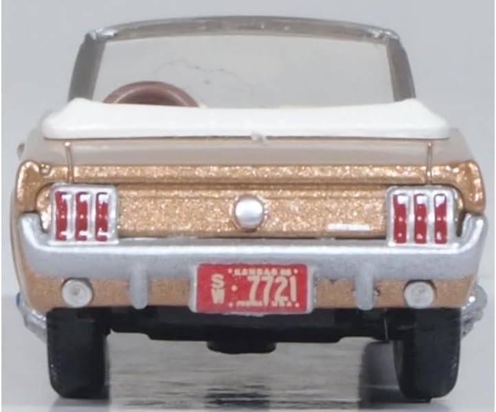 The 1965 Ford Mustang Convertible Prairie Bronze Metallic 1/87 (HO) Scale Diecast Model Car by Oxford Diecast celebrates the classic style of the first-generation Mustang. Featuring a gleaming bronze metallic finish, detailed interior, and authentic chrome accents, this HO-scale model is a perfect addition for collectors and model railroad displays.