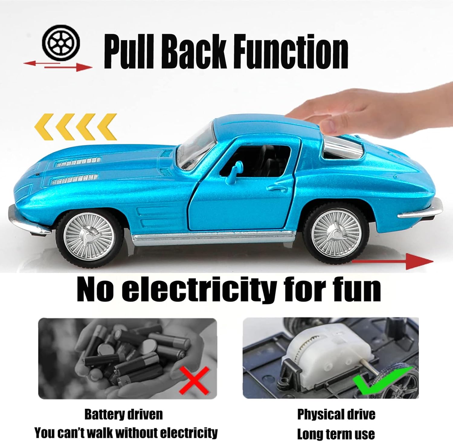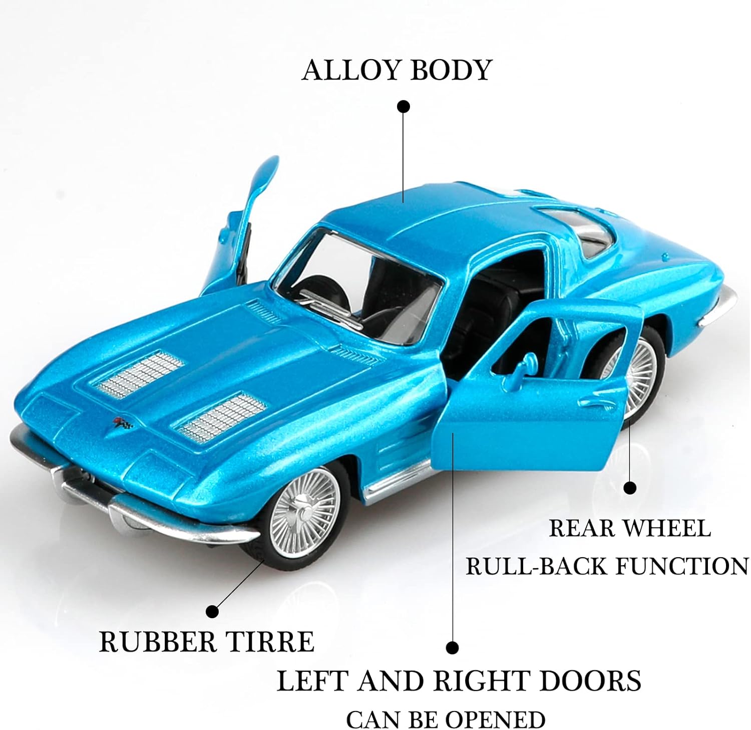 - High-Quality Materials:The Chevrolet Corvette die-cast car is made of zinc alloy,plastic parts and rubber tires,making it safe for children to play with.It features detailed interior and exterior trim, and is very sturdy.