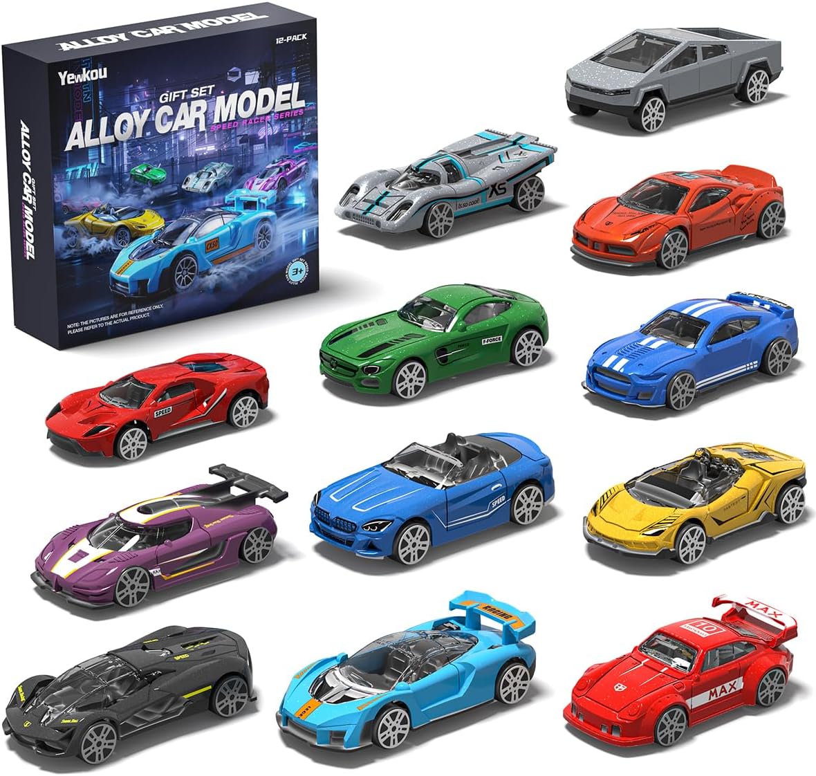 JOYIN 20PCS Die Cast Pull Back Cars, Metal Toy Cars, Car Toys Bulk, Vehicle Set for Toddlers, Kids Party Favors, Cake Toppers, Stocking Stuffers, Race Cars Toys for Boys, Easter Basket